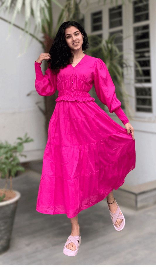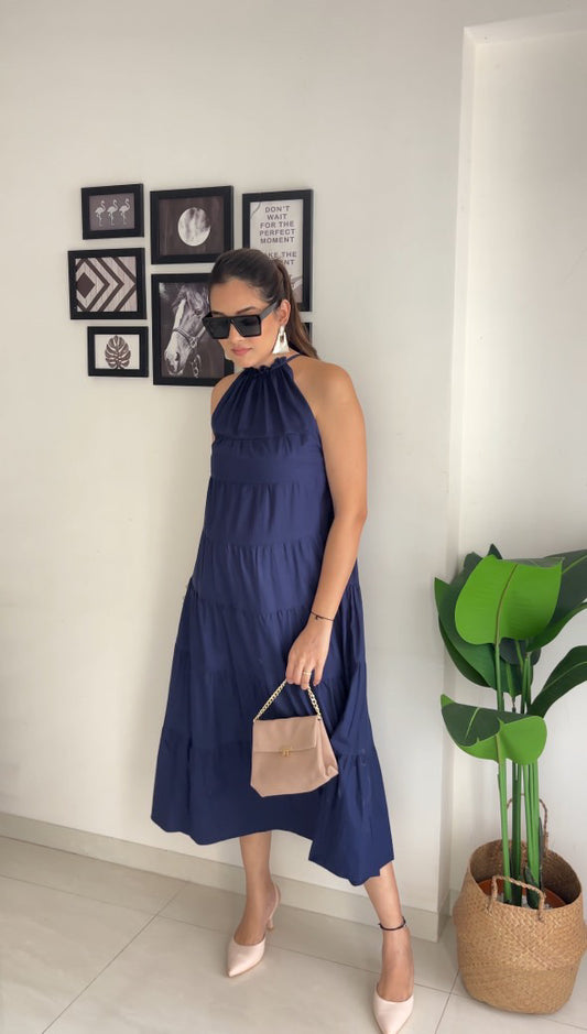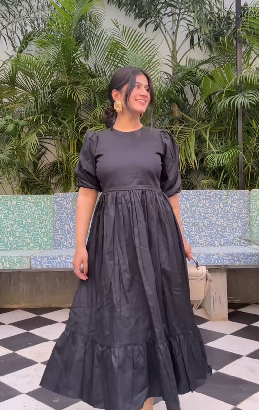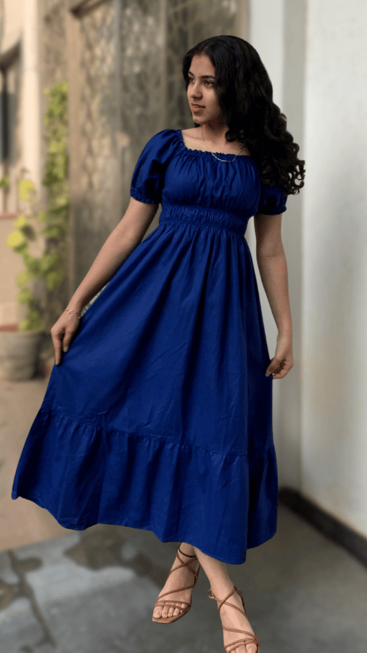 Blue Puff Sleeve Fit & Flare Midi Dress