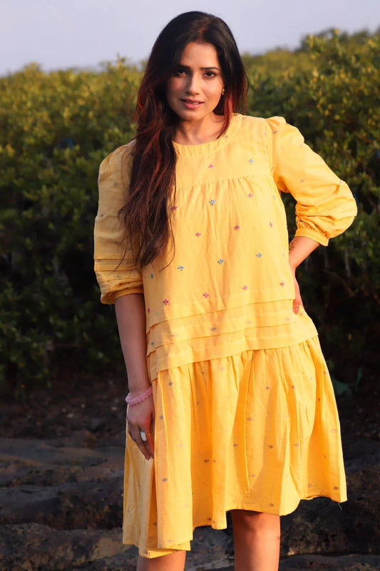 Sold outCotton Dobby Yellow Dress