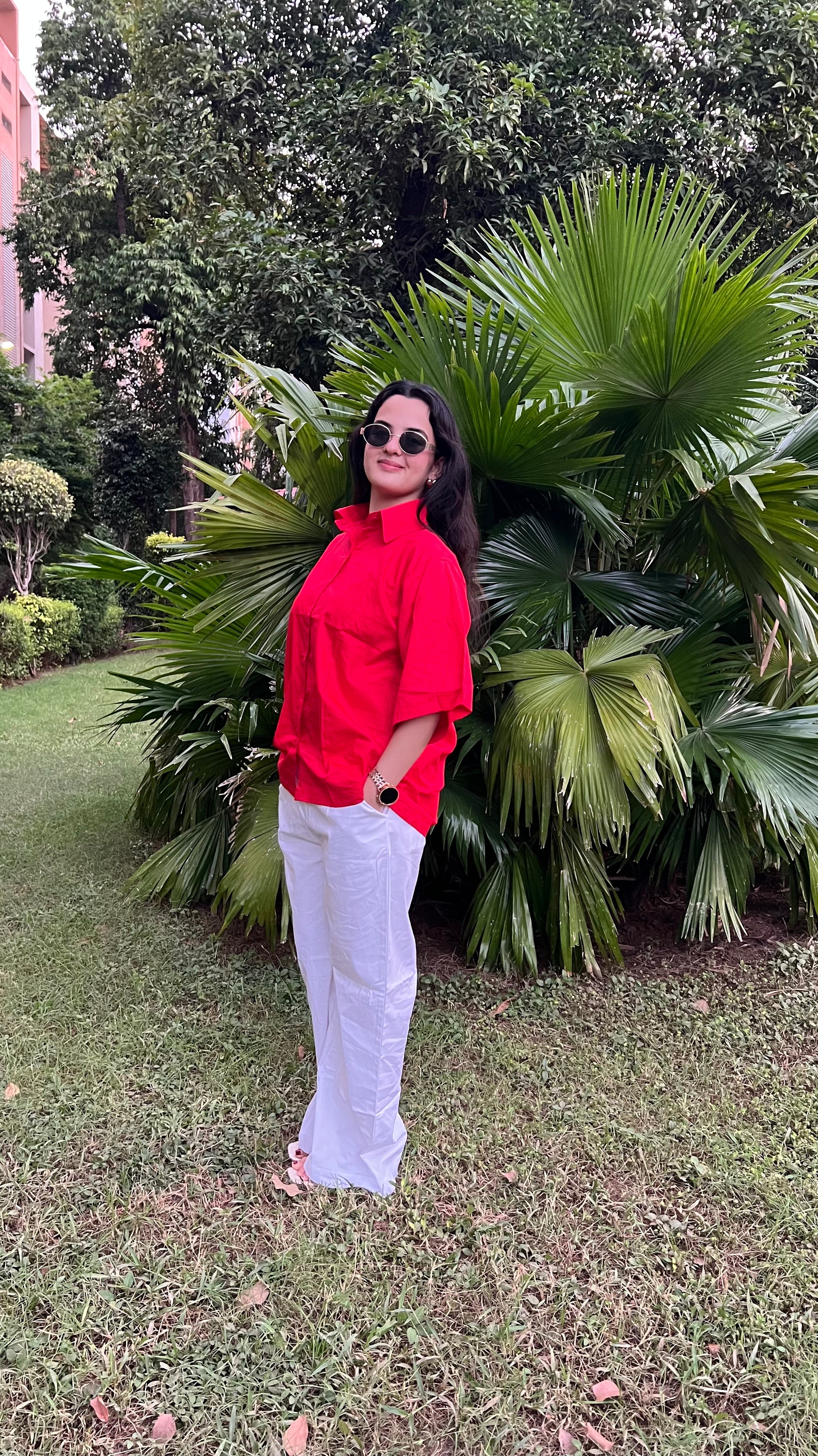 Rock this vibrant red oversized shirt with its eye-catching star design. Comfortable, versatile, and effortlessly stylish—perfect for everyday wear that makes you feel great.