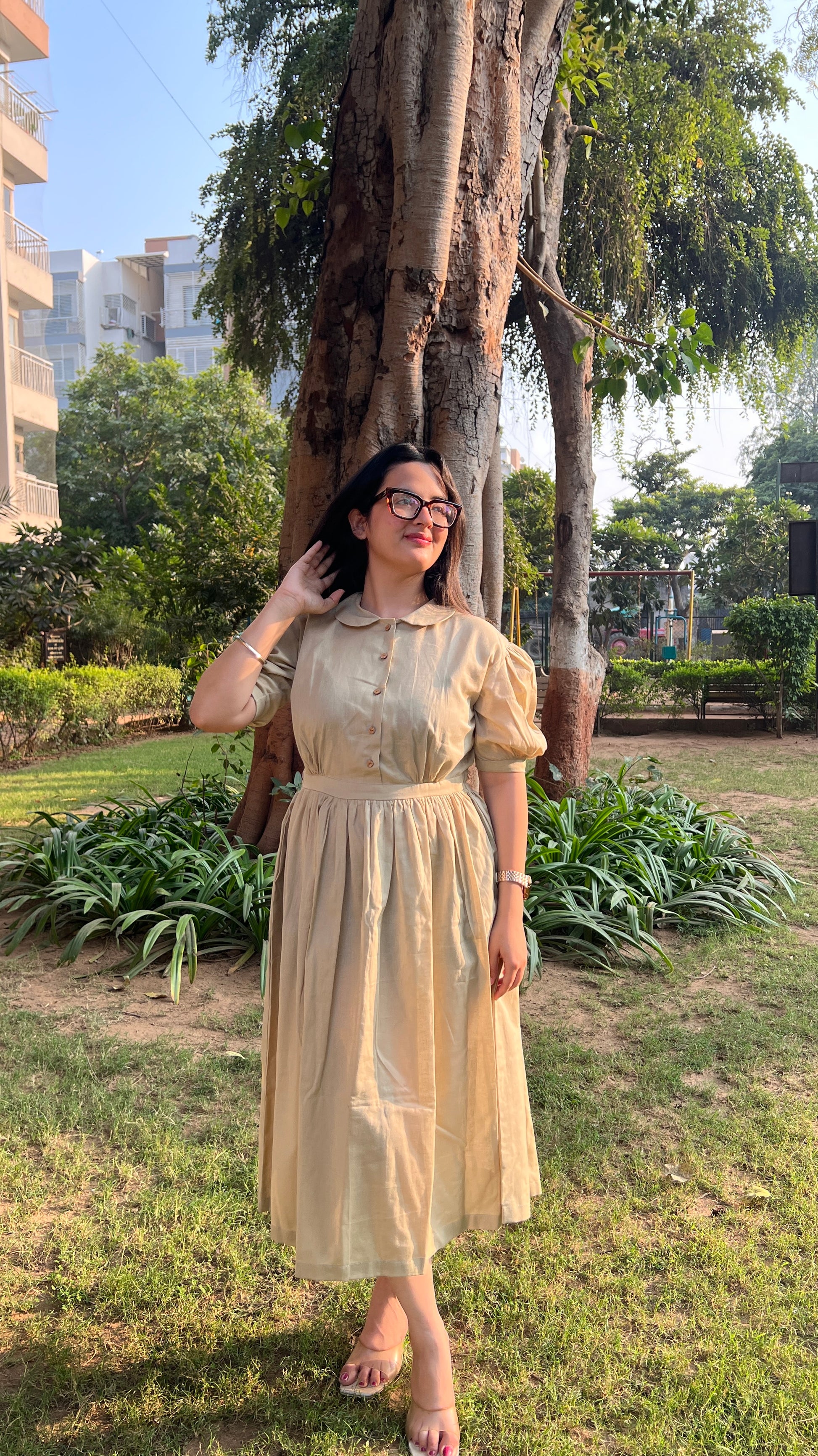 Embrace vintage vibes with this charming beige maxi dress! The soft, neutral shade pairs beautifully with any style, while the flowing silhouette keeps you comfortable and chic. A timeless piece that works for everything from casual outings to special occasions.